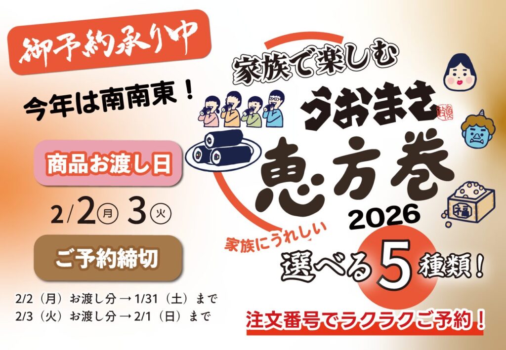 今年の節分も、うおまさの美味しいお魚でたくさんの「福」が訪れますように!