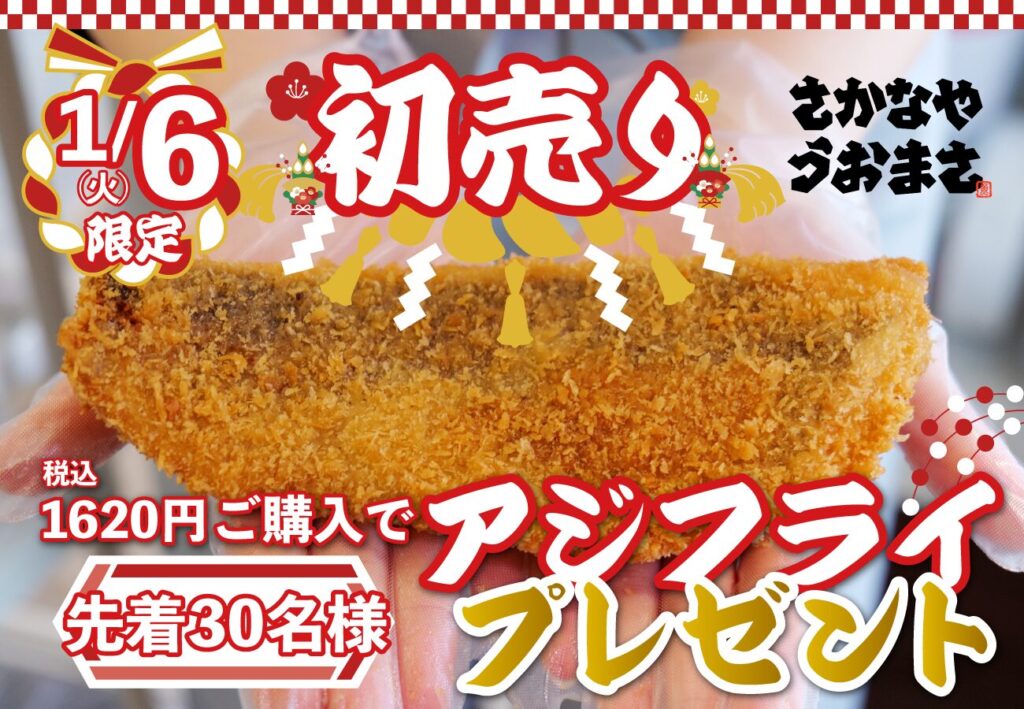 【魚政初売り2026】1/6(火)限定!税込1,620円以上で「アジフライ」プレゼント(先着30名)