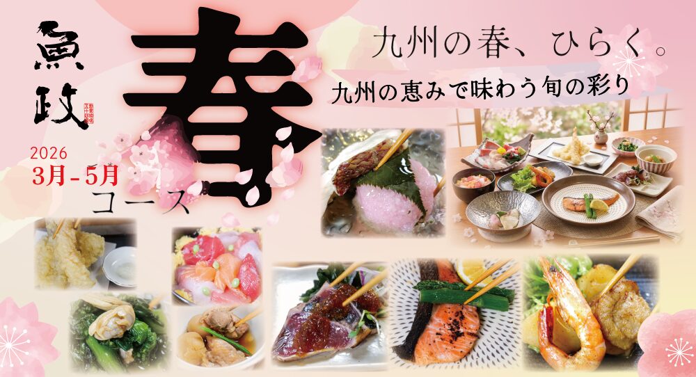 魚政の春コースは、桜鯛・菜の花・筍など九州の春食材を使った季節限定の会席料理です。