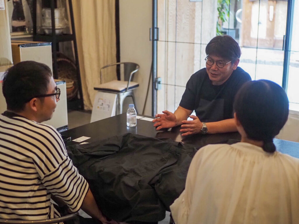 そんなVéritécoeurのものづくりへの真摯な姿勢と、魚政の「まっすぐに、美味しさと温もりを届ける」という想いが重なり、今回のコラボレーションが実現しました。現在はデザインや仕様の細部を詰めている段階で、完成した制服は改装オープンとともにお披露目予定です。魚政の新しい制服が、スタッフにとって心地よく、お客様にとっても印象に残る存在になるよう、一着一着丁寧に製作を進めています。どうぞご期待ください。