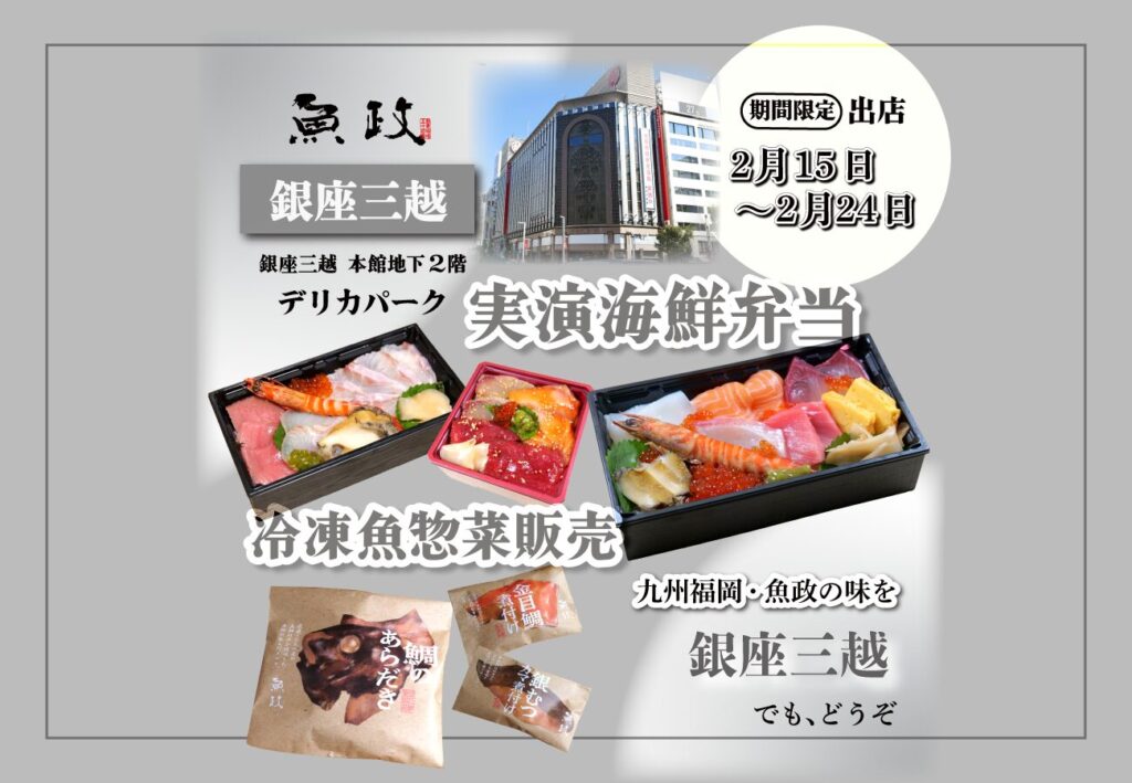 福岡県久留米市の老舗魚屋「魚政(うおまさ)」が、 2月15日(土)〜2月24日(火a)の期間、 銀座三越 地下2階 デリカパークにて期間限定出店いたします。