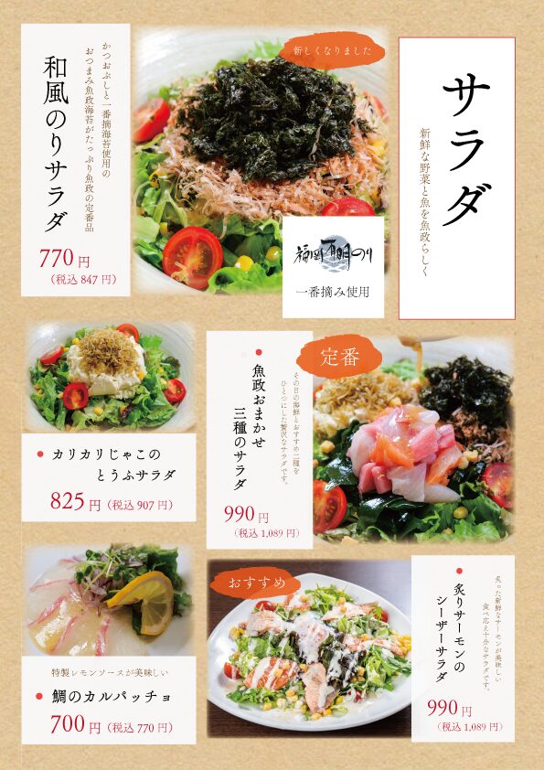 - 魚政おまかせ三種のサラダ 1,089円(税込)