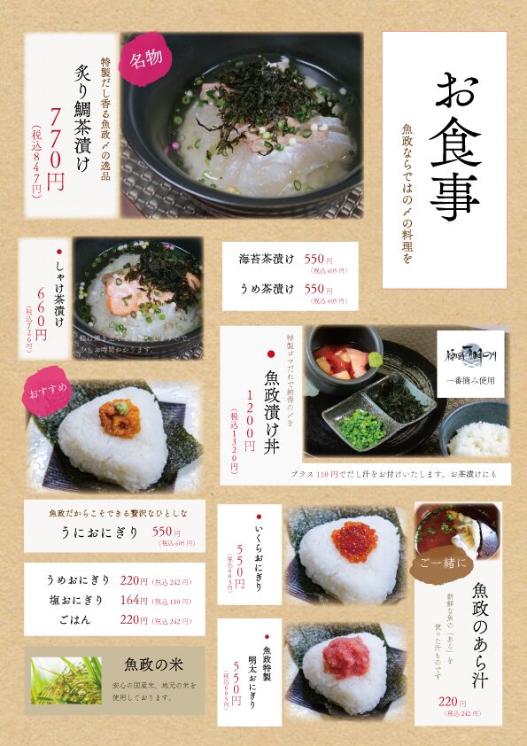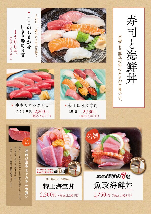 ※毎週月曜日は「魚政」「さかなやうおまさ」ともに店休日。